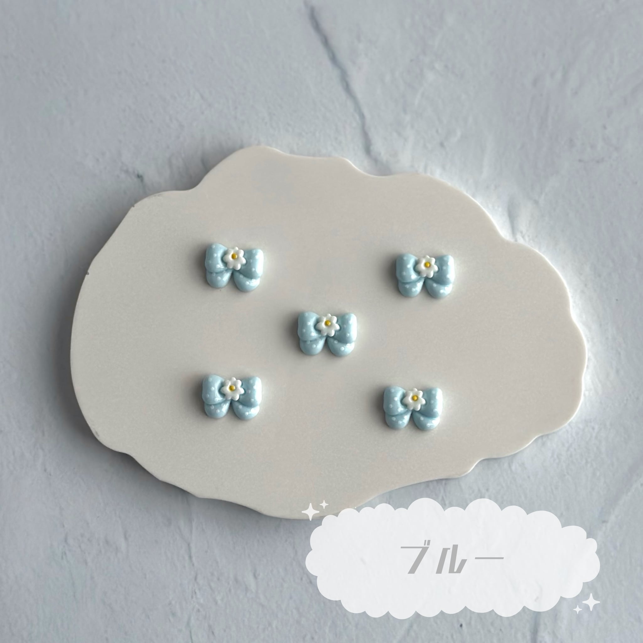 【4個】ミニドットリボン デコパーツ【全6色】
