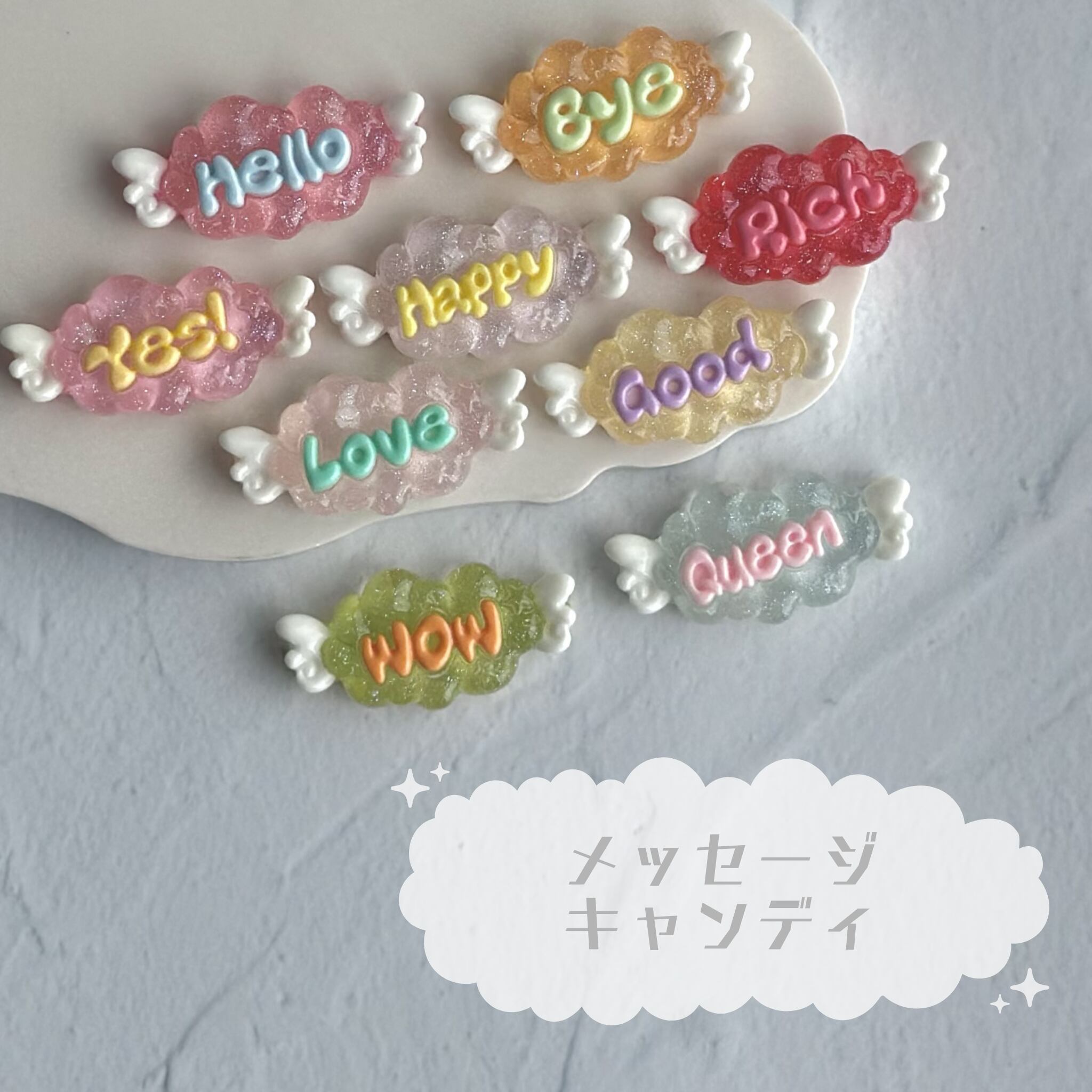 【4個】メッセージキャンディ デコパーツ【全9種】