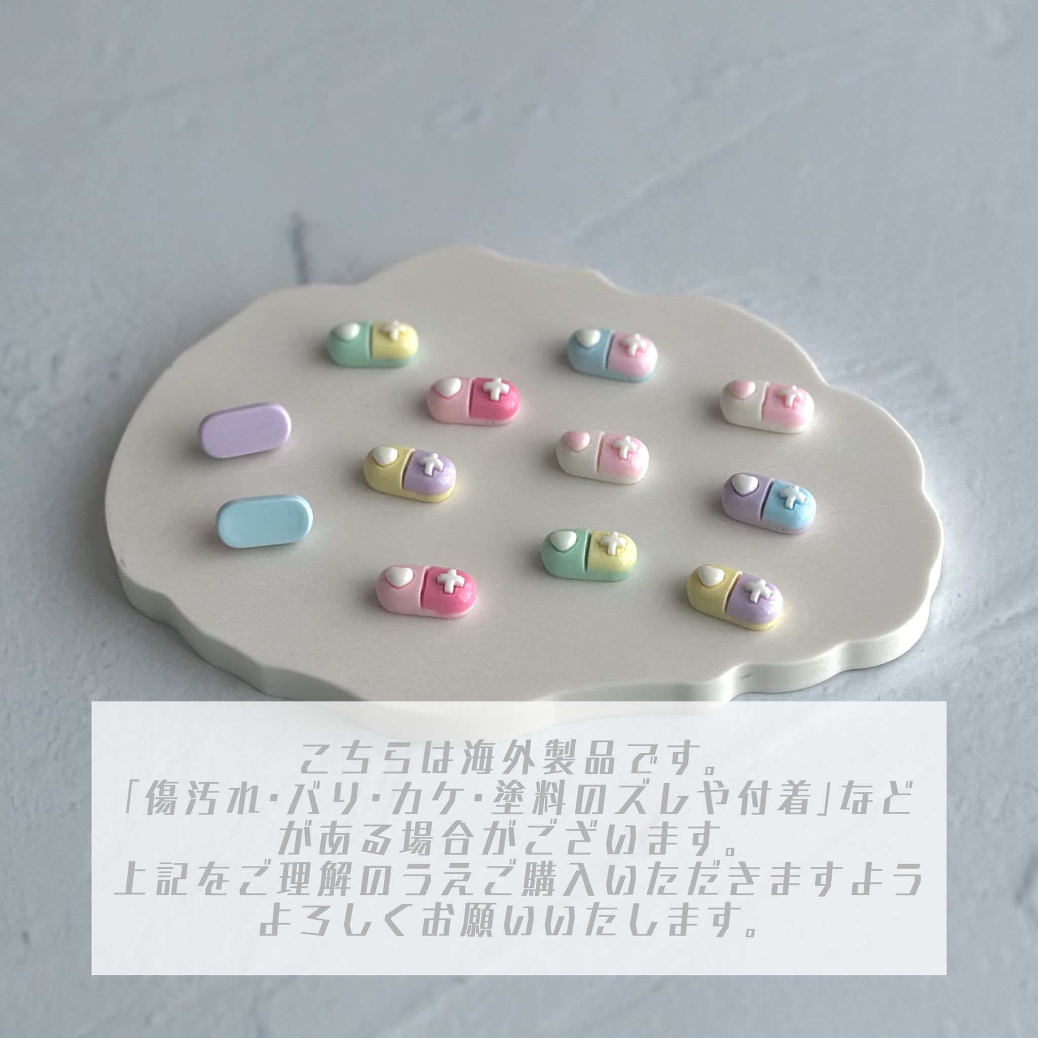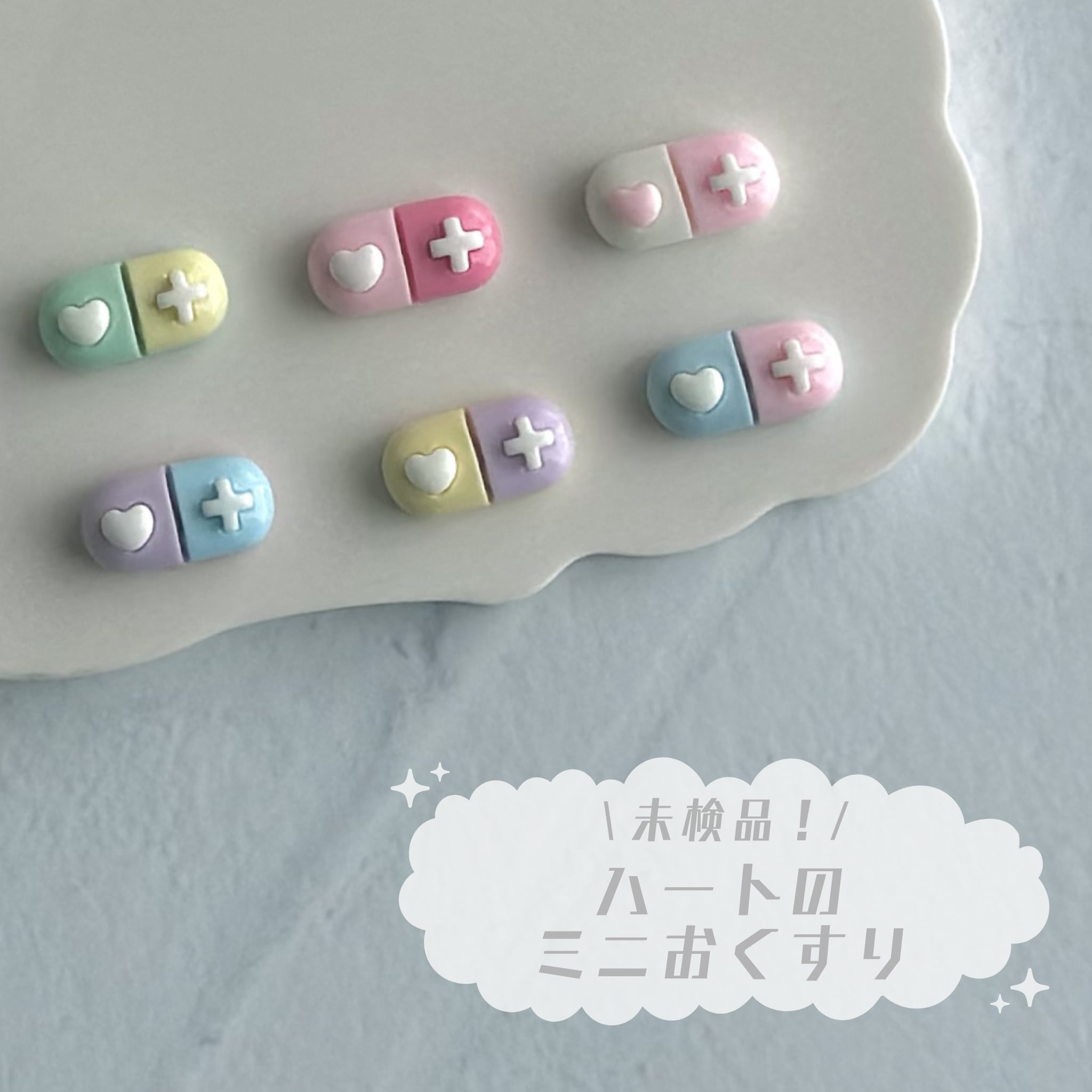 【未検品/18個】ハートのミニおくすり デコパーツ【全6色】
