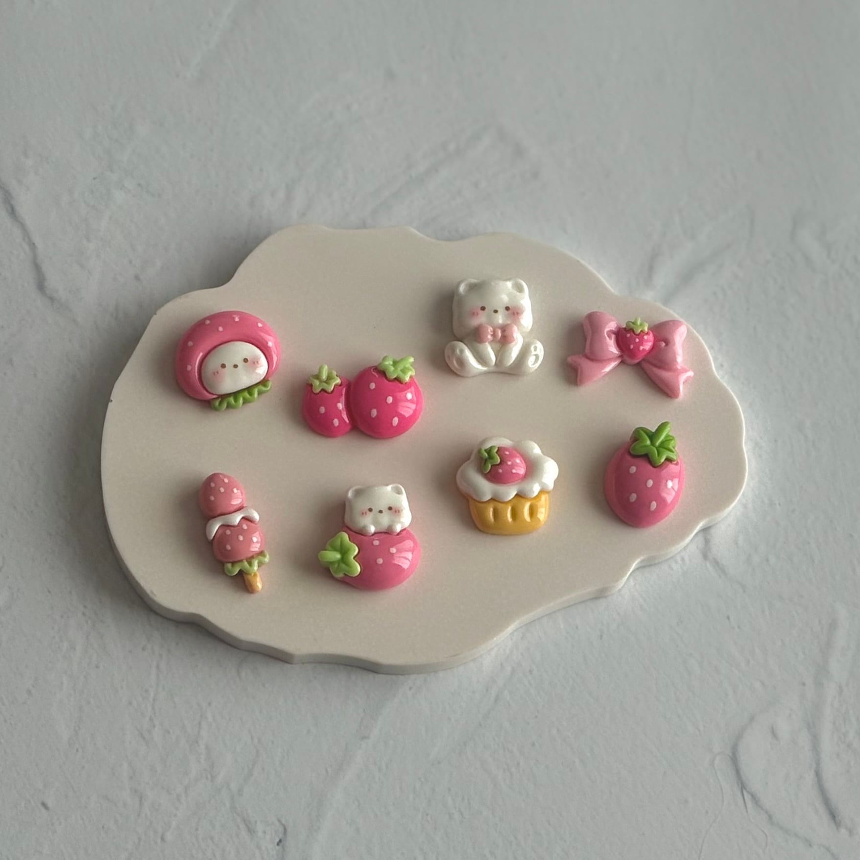 【4個】くまちゃんといちご デコパーツ 【全8種】