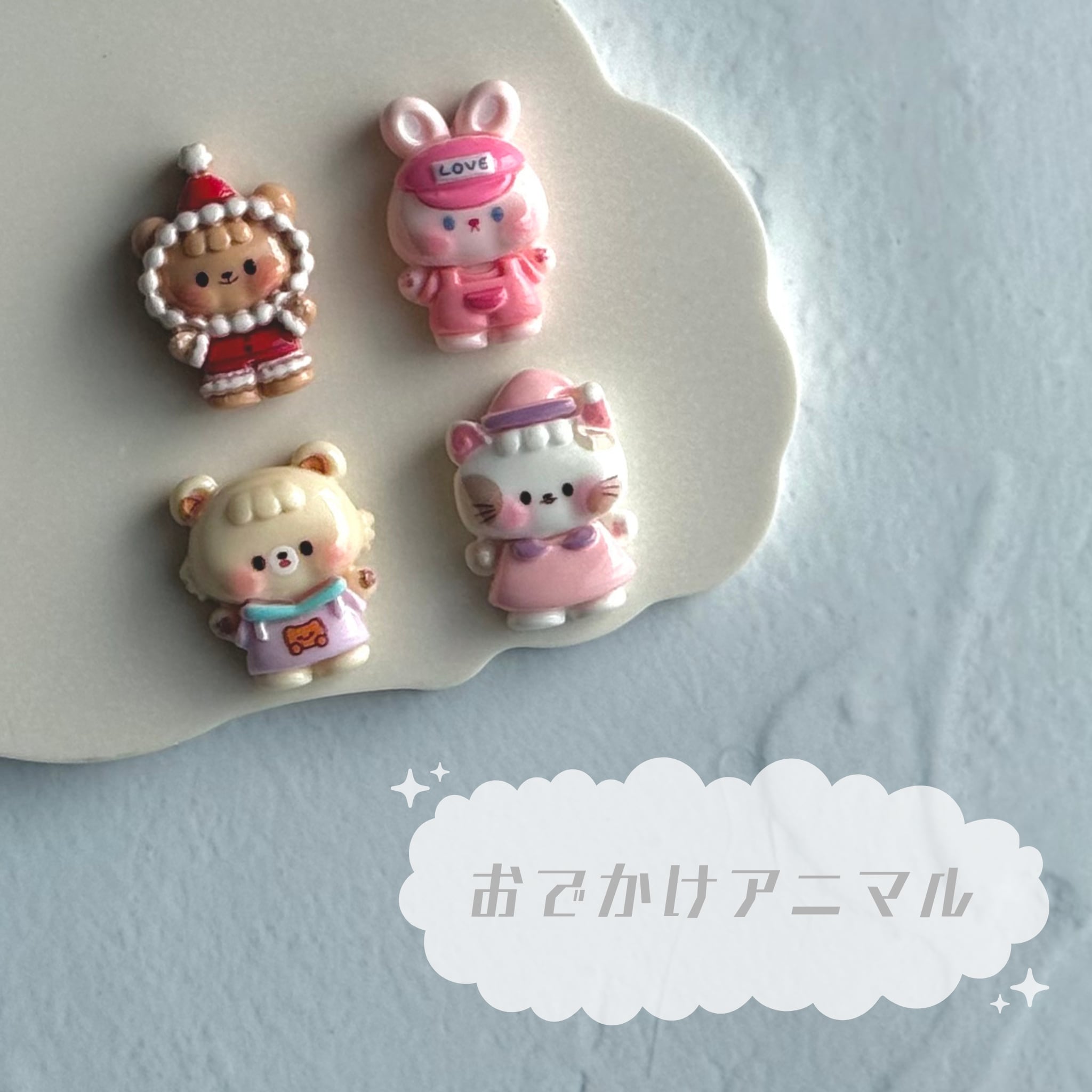 【4個】おでかけアニマル デコパーツ【全4種】