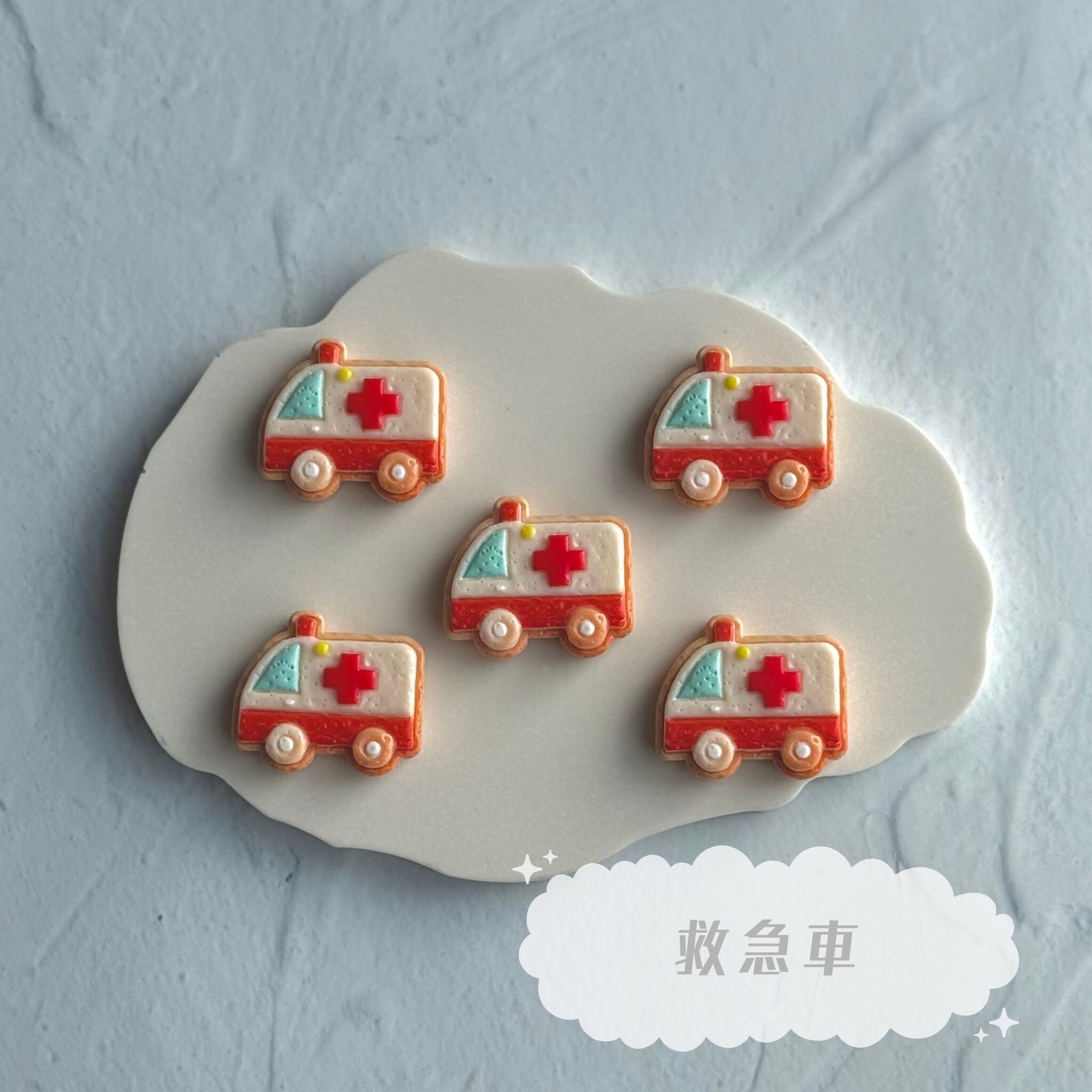 【4個】乗り物ビスケット デコパーツ【全5種】
