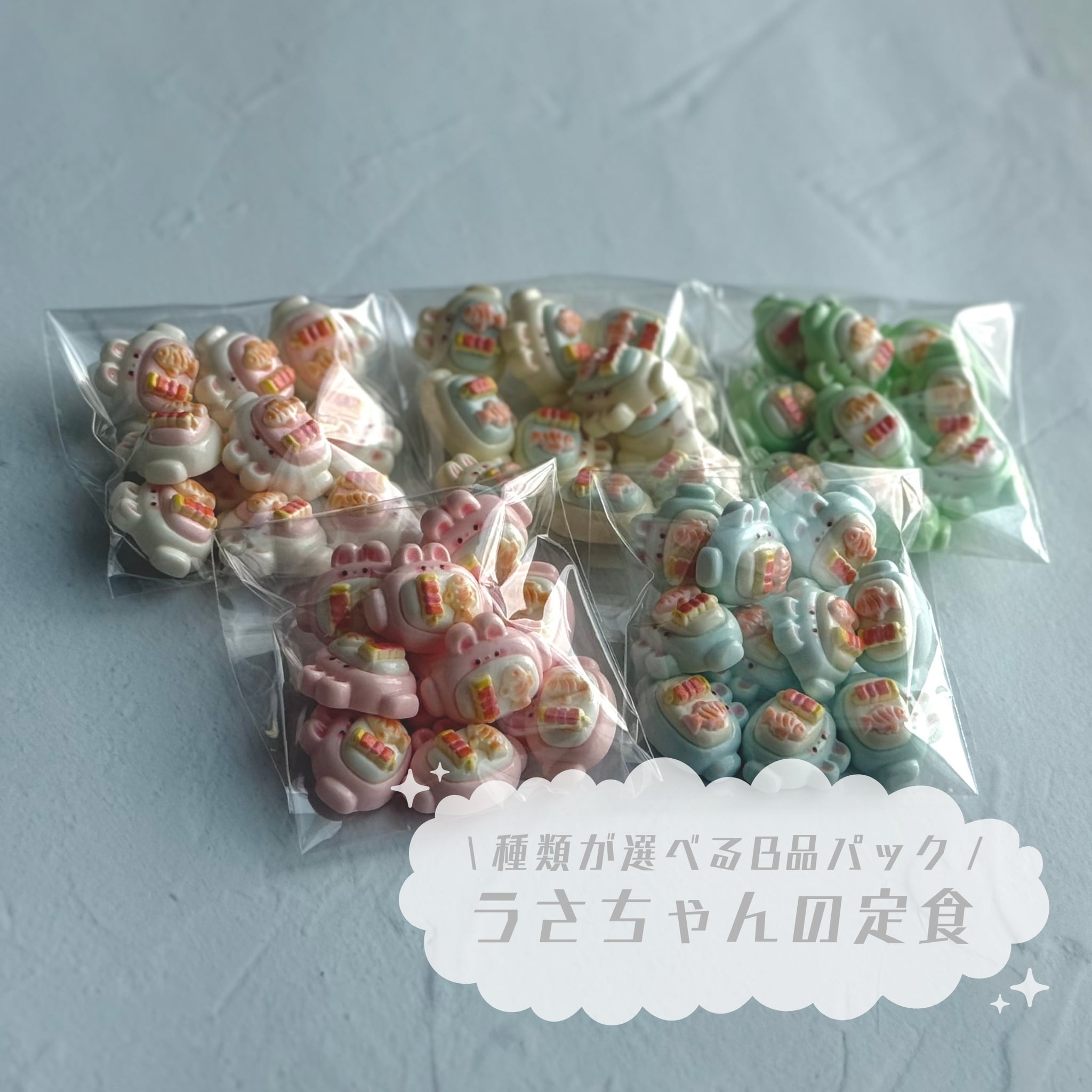 【10個】種類別うさちゃんの定食 B品パック デコパーツ【全5色】
