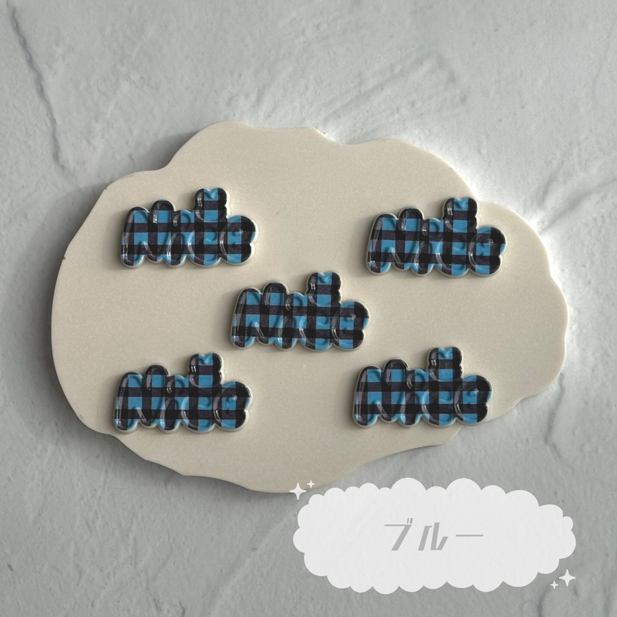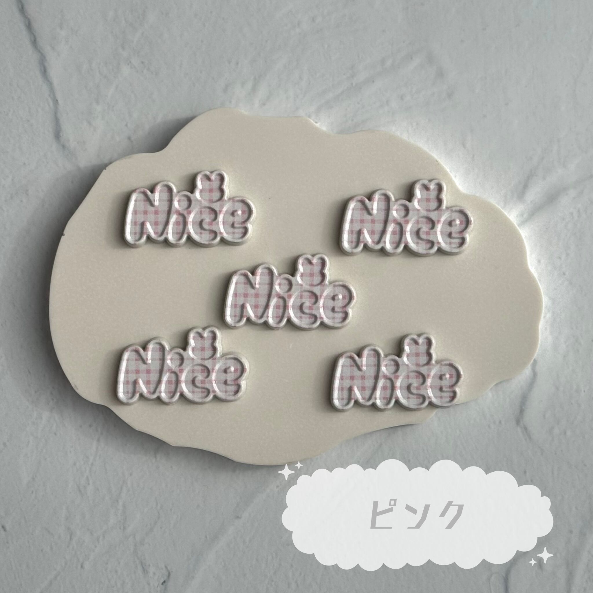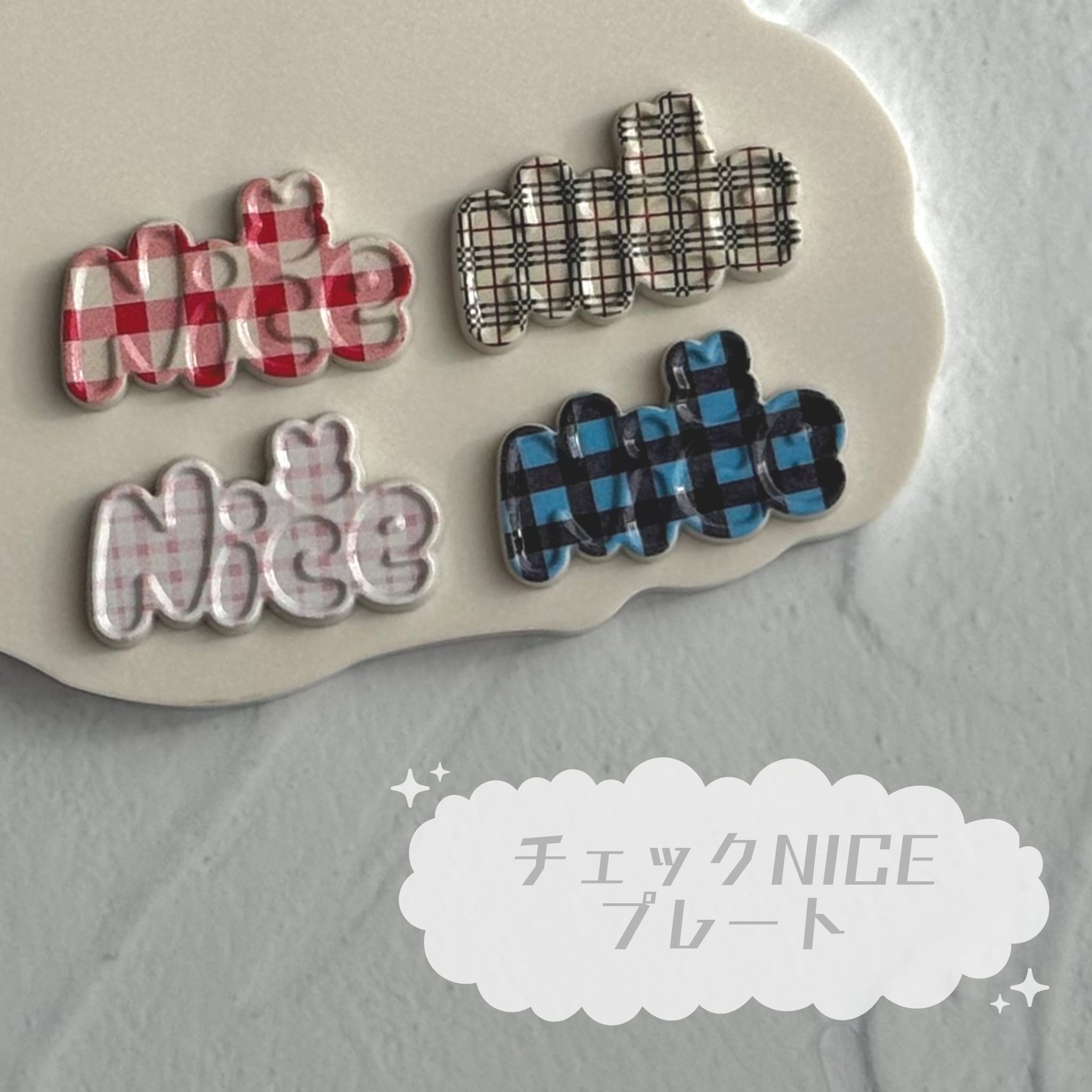 【4個】チェックNICEプレート デコパーツ【全4色】