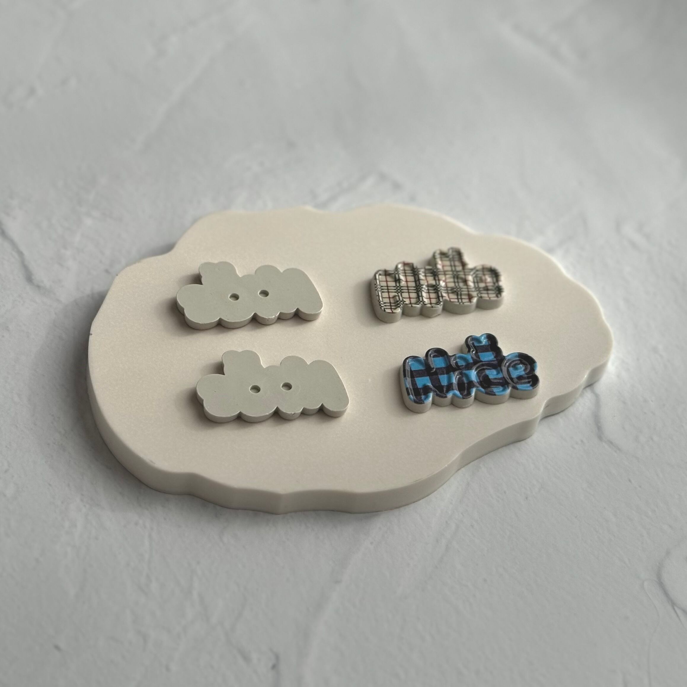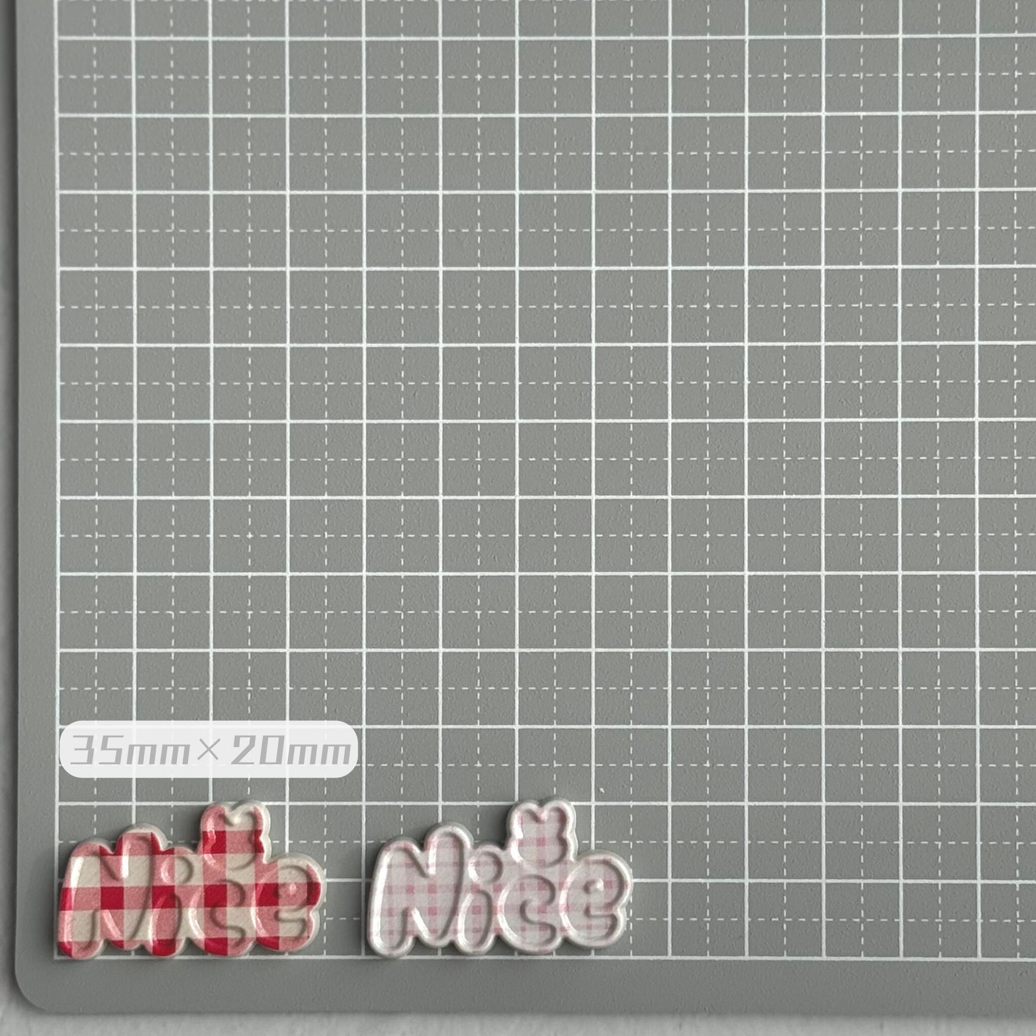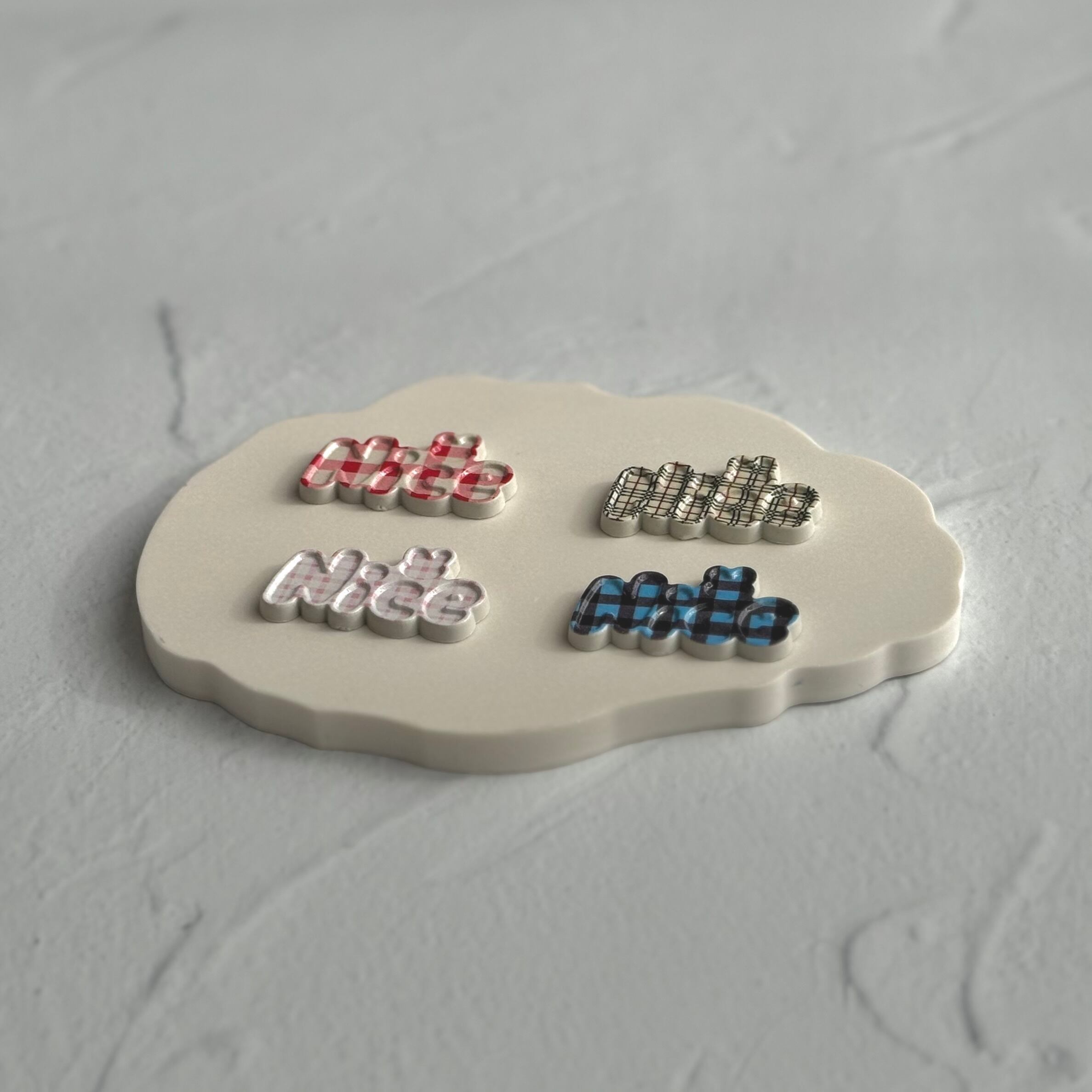 【4個】チェックNICEプレート デコパーツ【全4色】