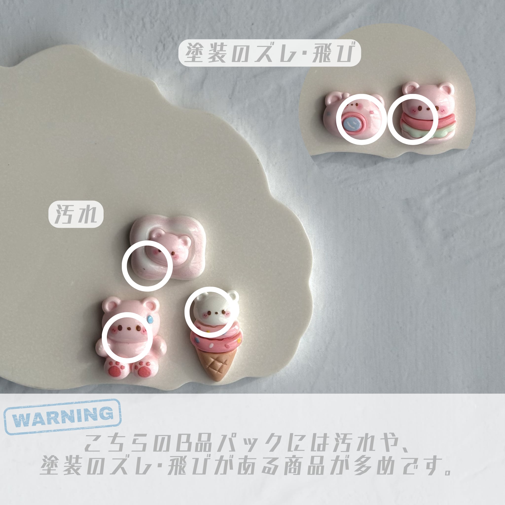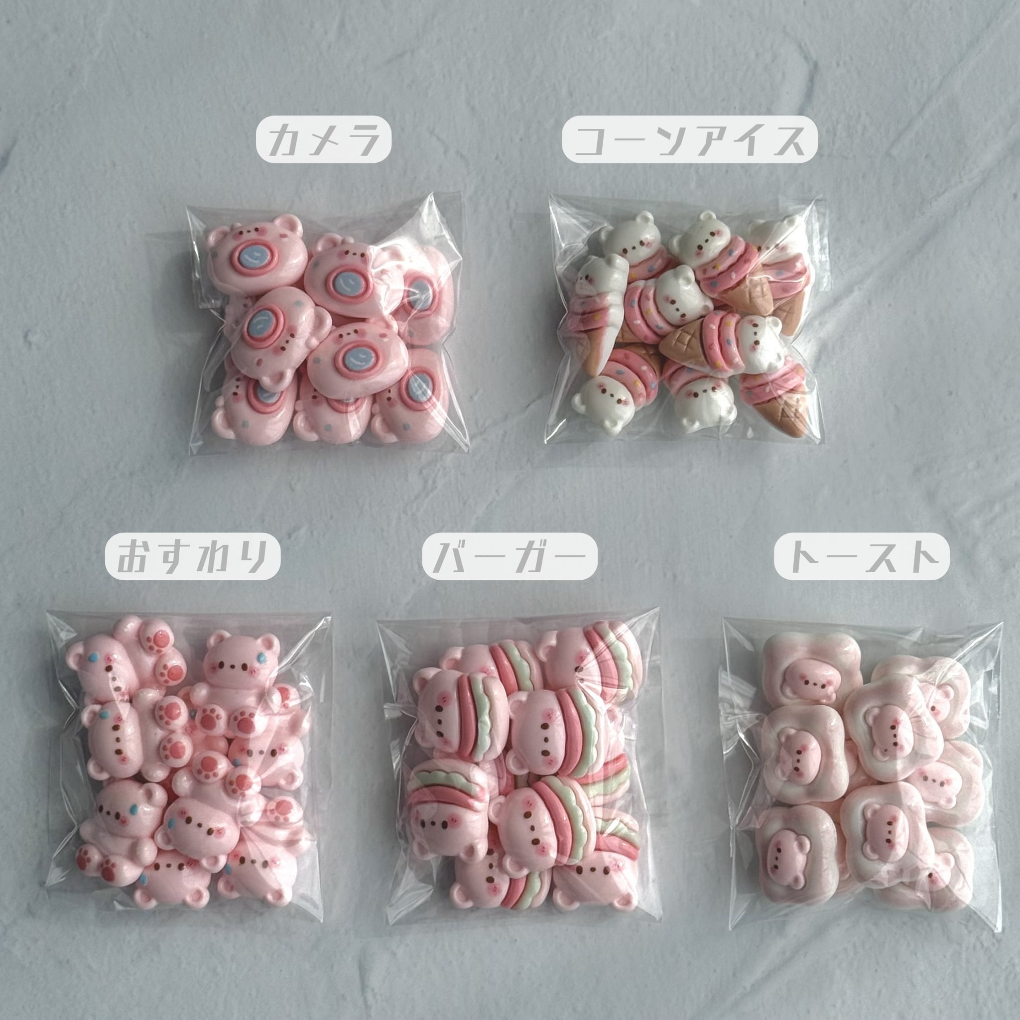 【10個】種類別くまちゃんとおでかけスイーツ B品パック デコパーツ【全5種】