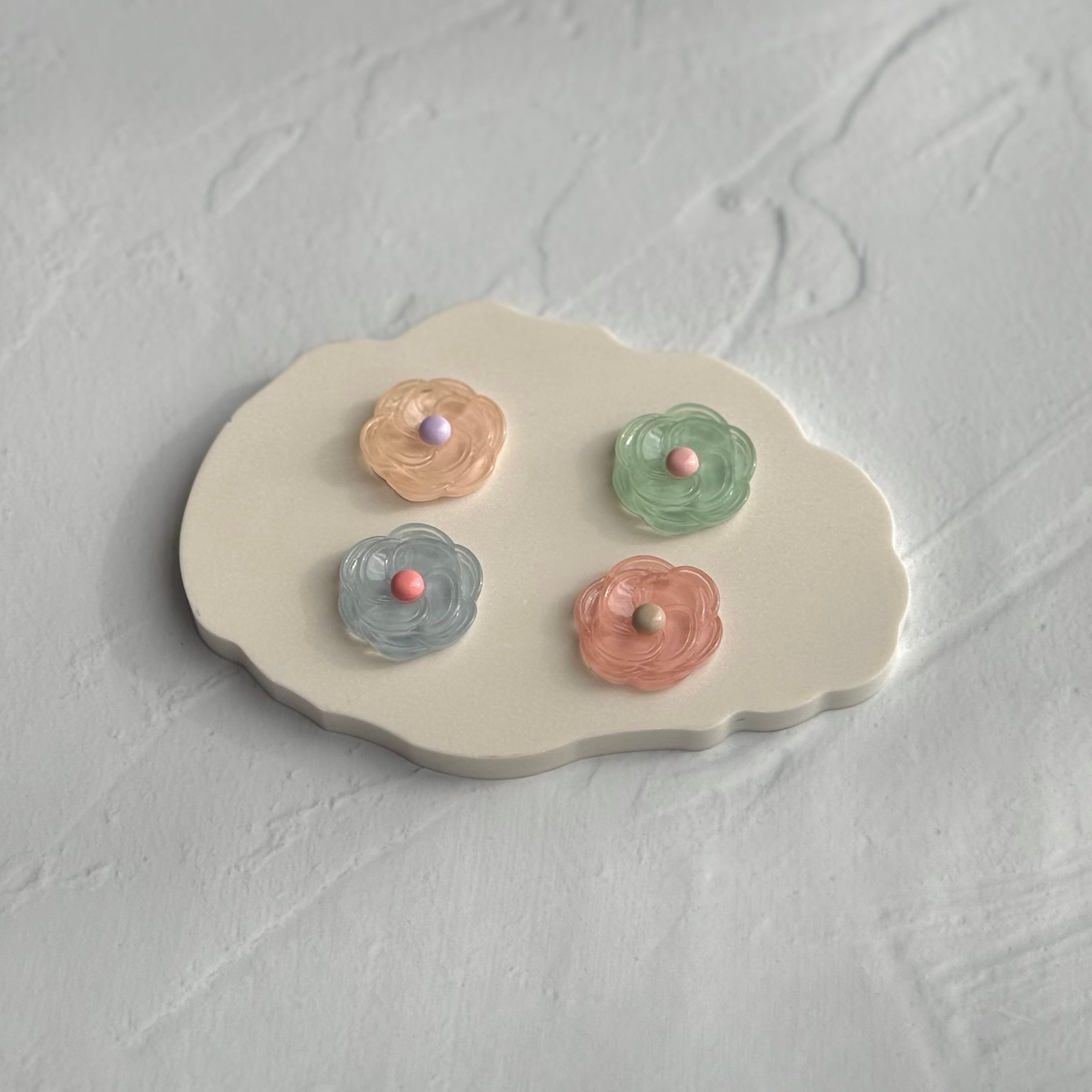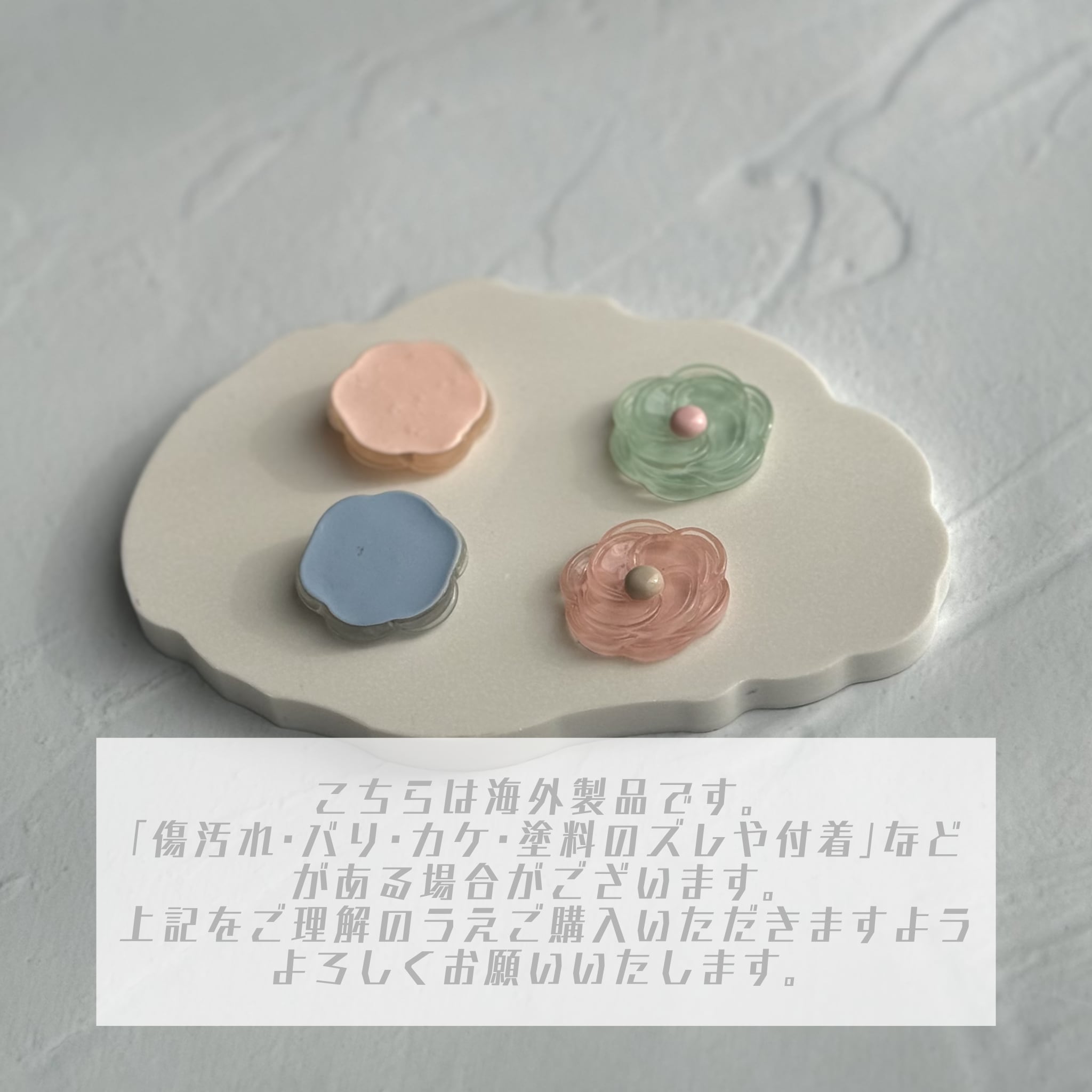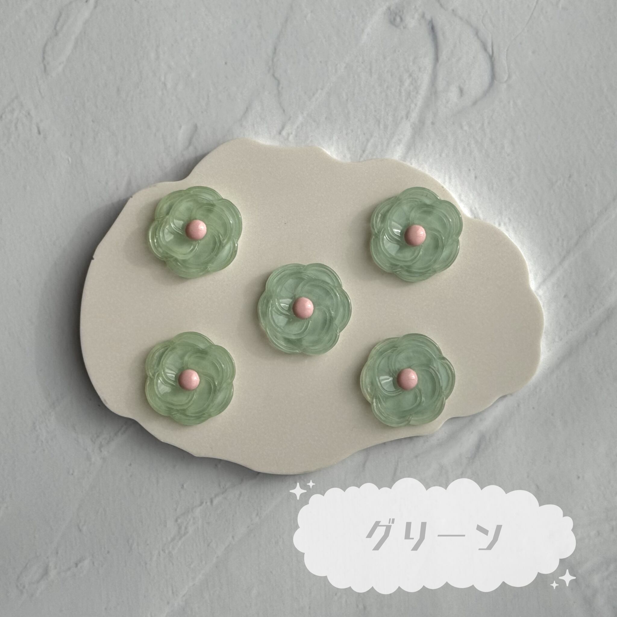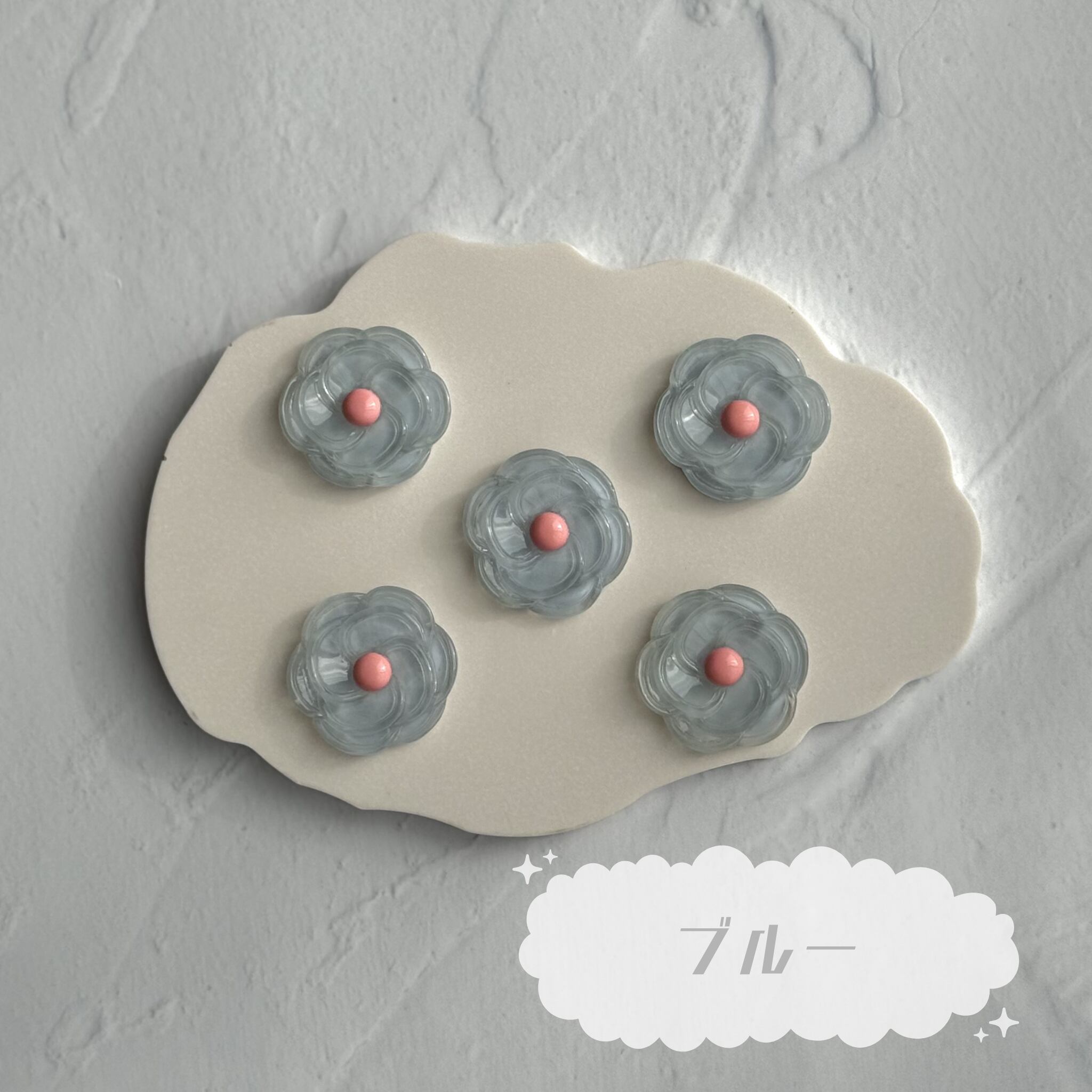 【4個】フリル咲きクリアフラワー デコパーツ【全4色】