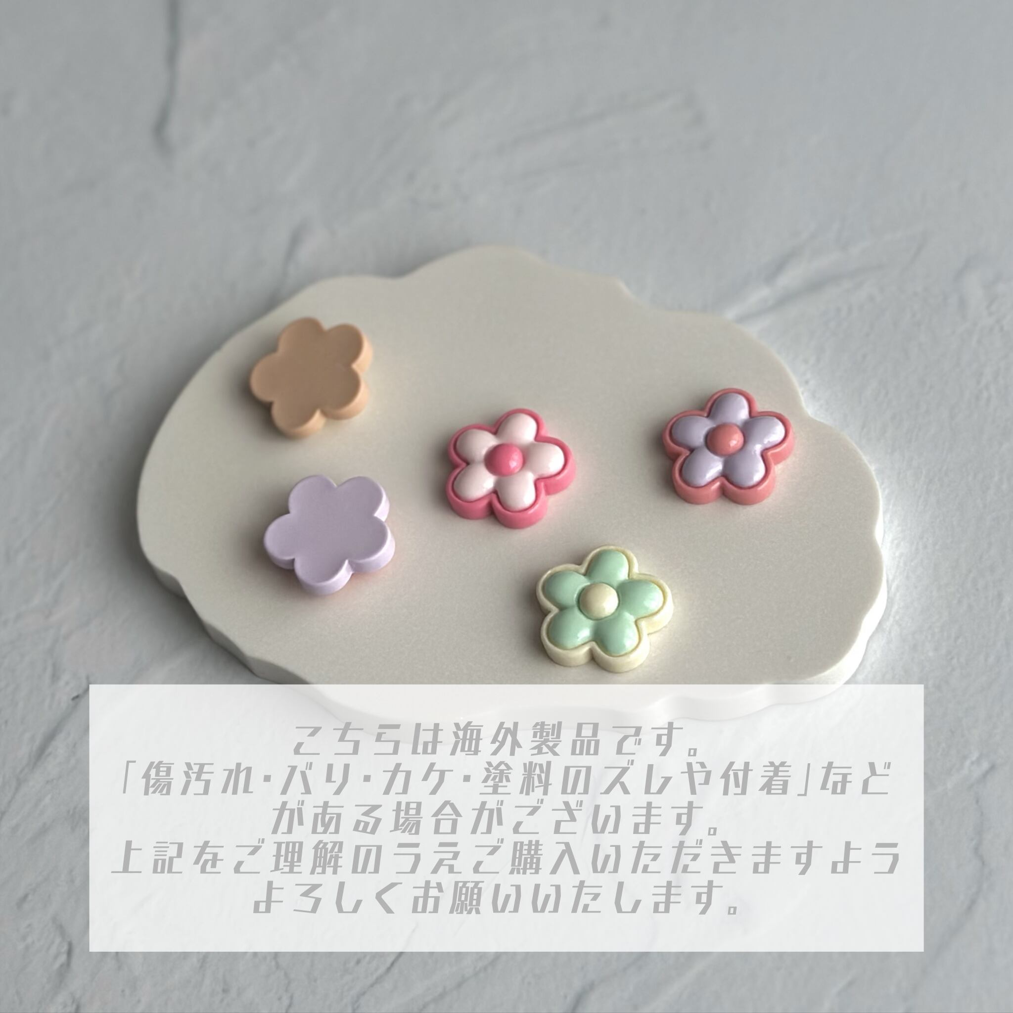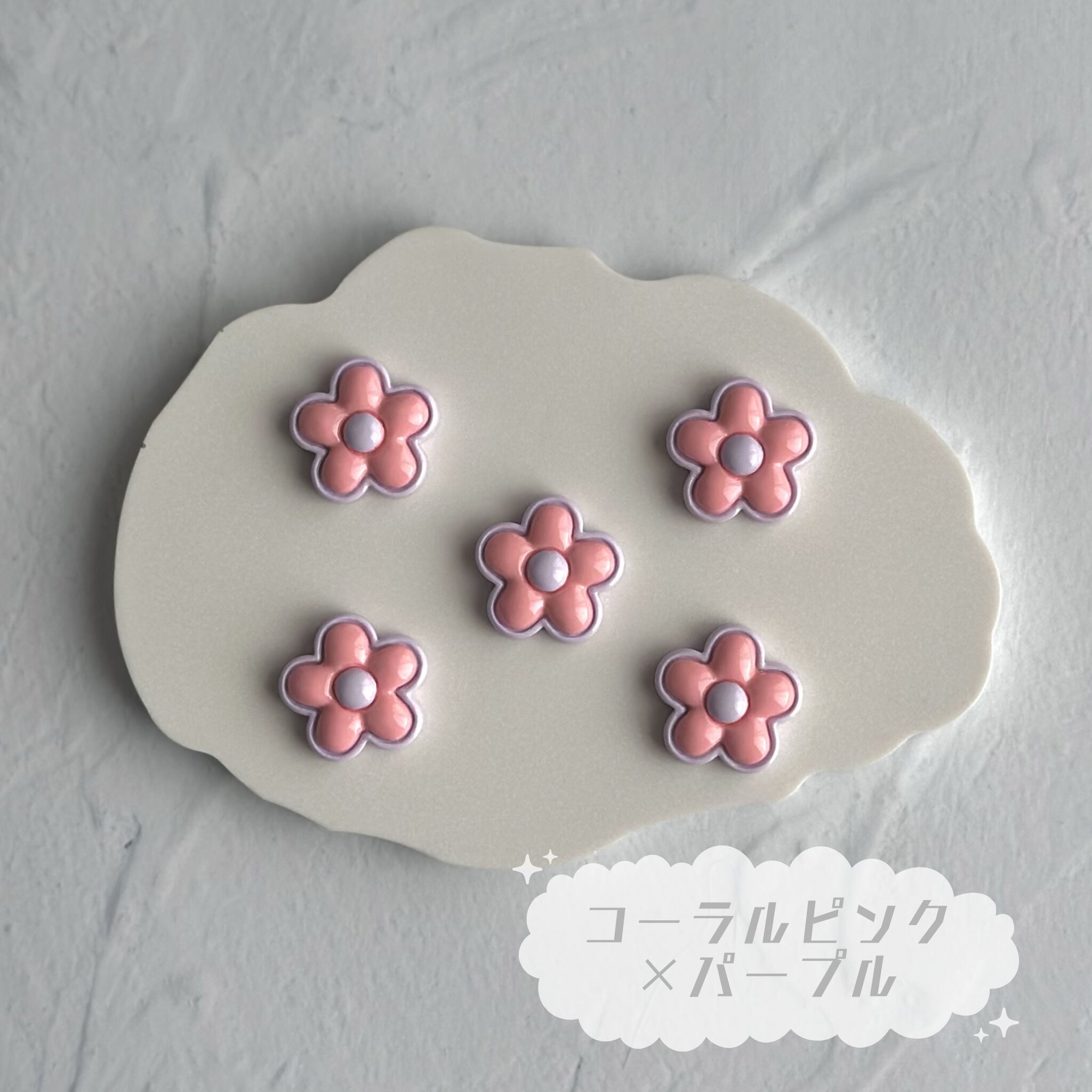 【4個】ぷっくりフラワー デコパーツ【全5色】