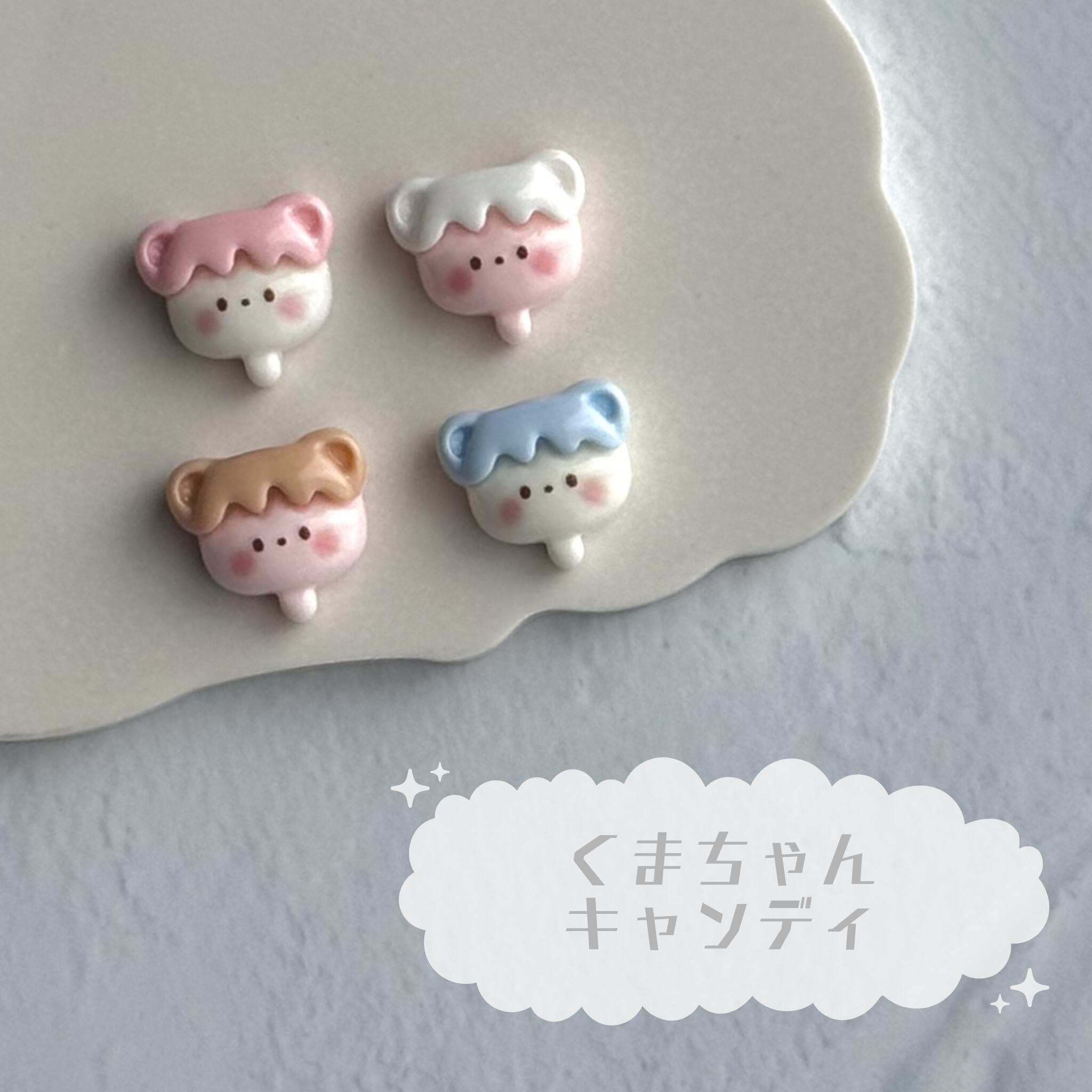 【4個】くまちゃんキャンディ デコパーツ【全4色】