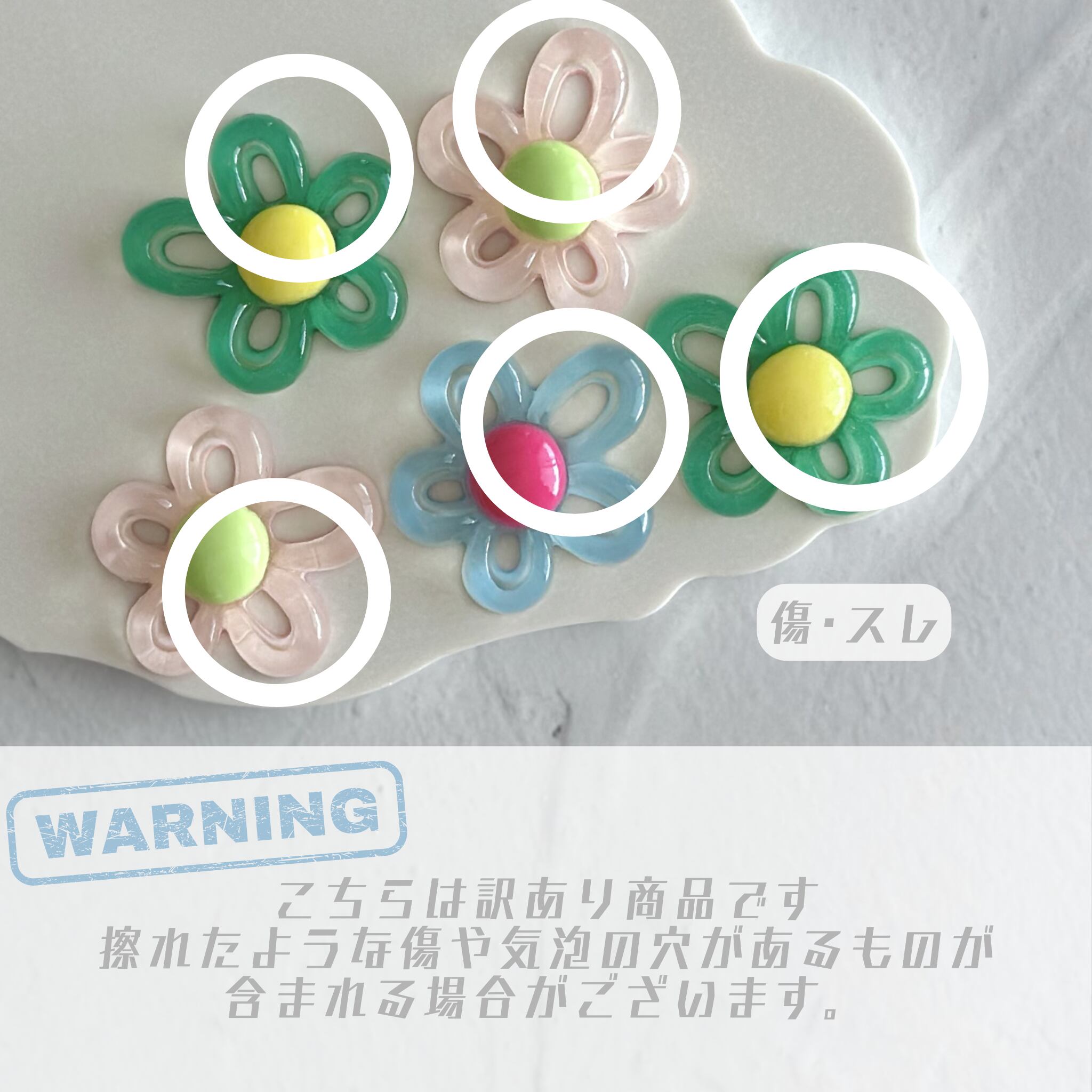 【4個】\訳あり/お絵描きクリアフラワー デコパーツ【全9色】