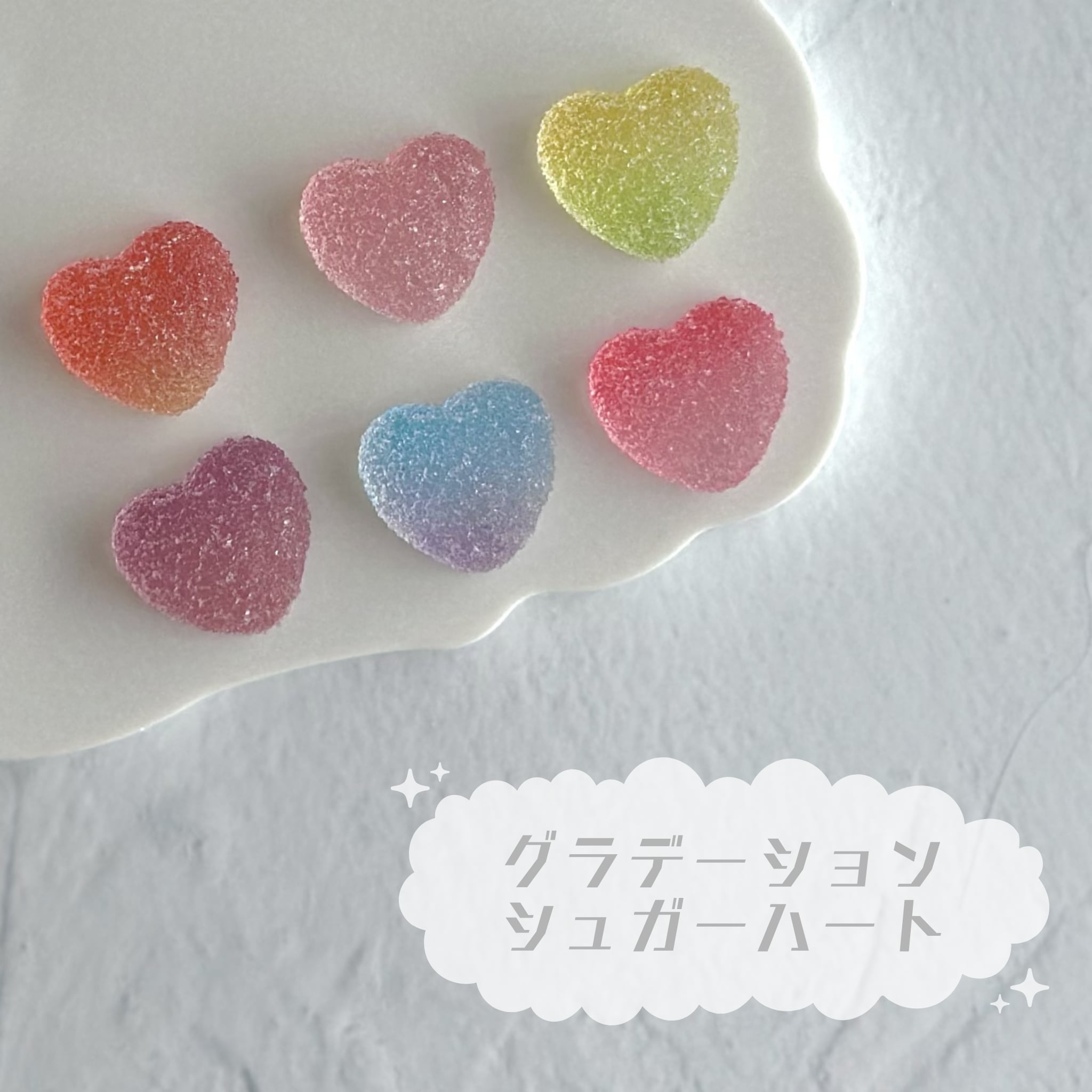 【4個】グラデーションシュガーハート デコパーツ【全6色】