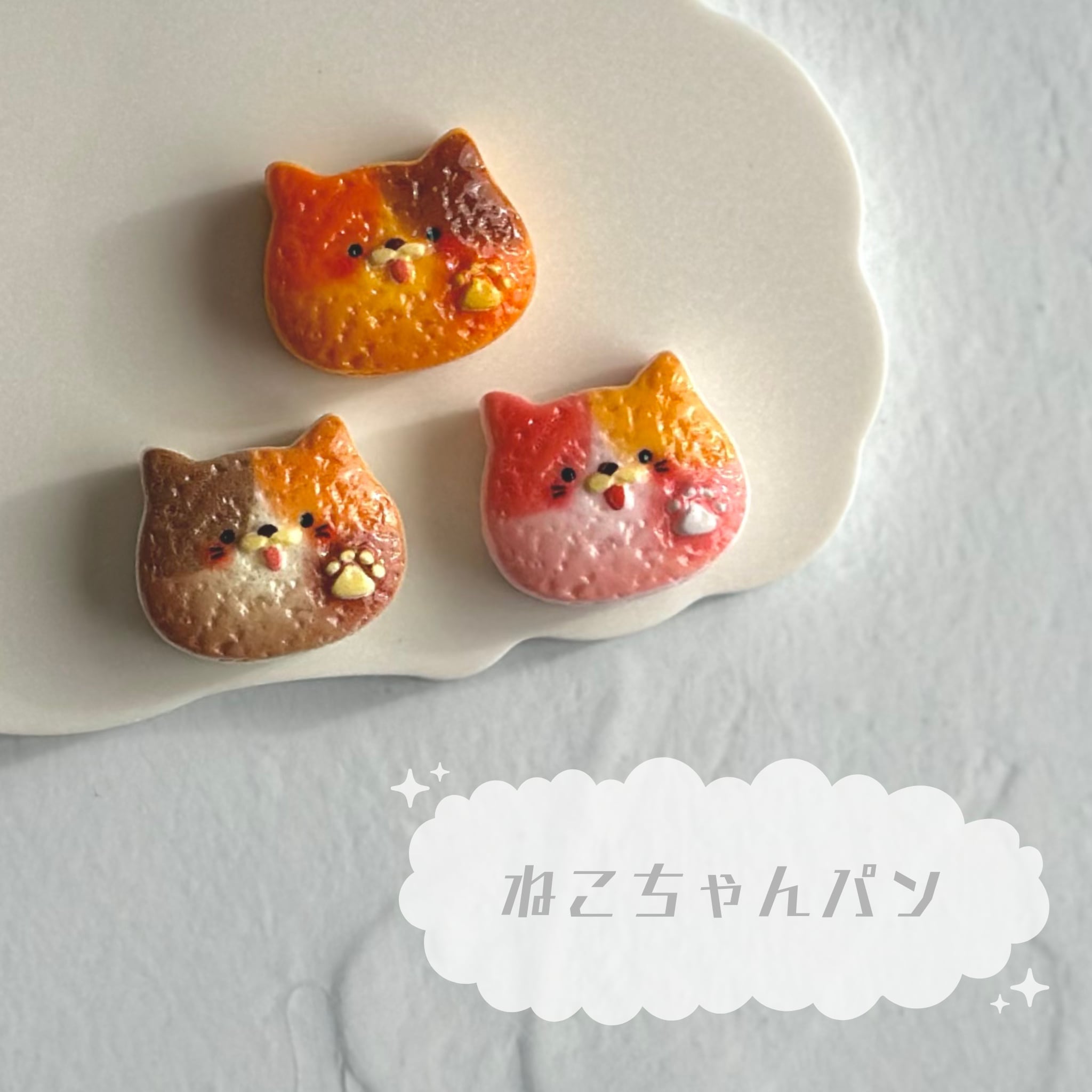 【4個】ねこちゃんパン デコパーツ【全3色】