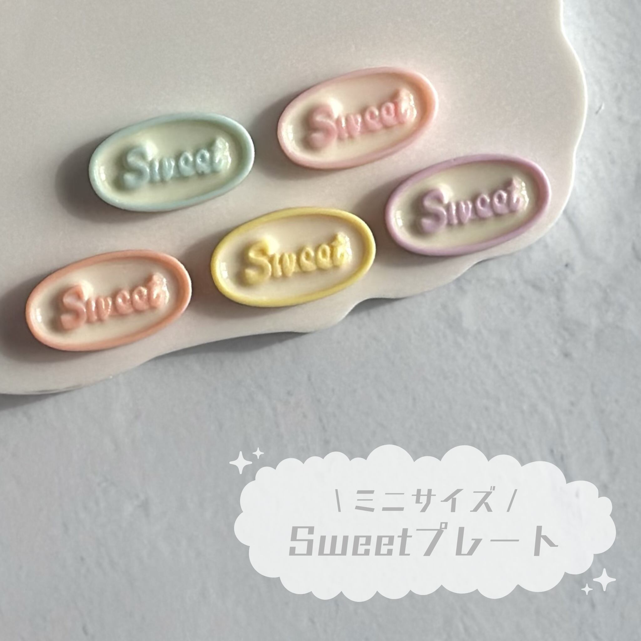 【4個】ミニsweetプレート デコパーツ【全5色】